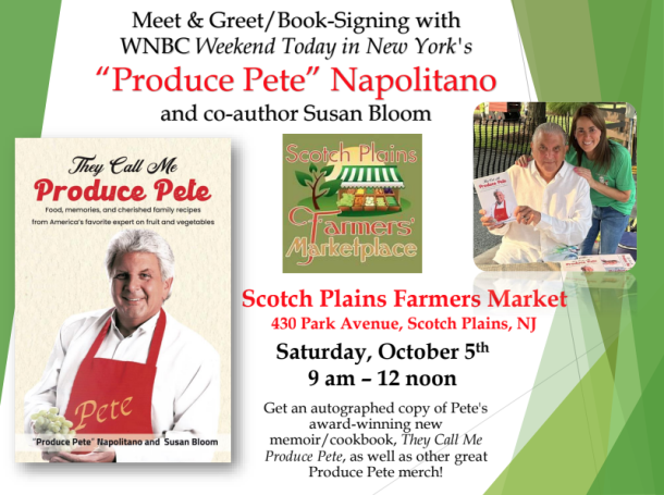 On October 5, Scotch Plains will welcome award-winning author "Produce" Pete Napolitano to our Farmers Market at 430 Park Avenue! He will be signing copies of his new book They Call Me Produce Pete from 9am-12pm.