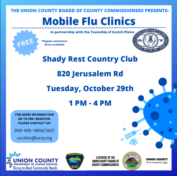 Come get your Flu shot at the free Mobile Flu Clinic from 1pm-4pm at Shady Rest Country Club, 820 Jerusalem Road. Regular and senior doses will be available.