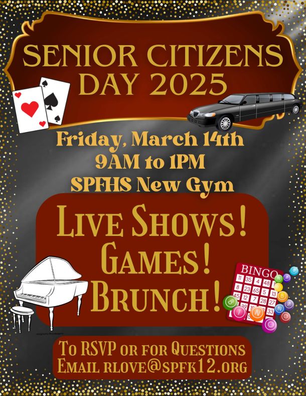 Celebrate with a fun-filled day of live shows, games, and brunch on Friday, March 14th, from 9 AM to 1 PM at the SPFHS New Gym. Enjoy a morning of entertainment, delicious food, and the chance to win at BINGO!