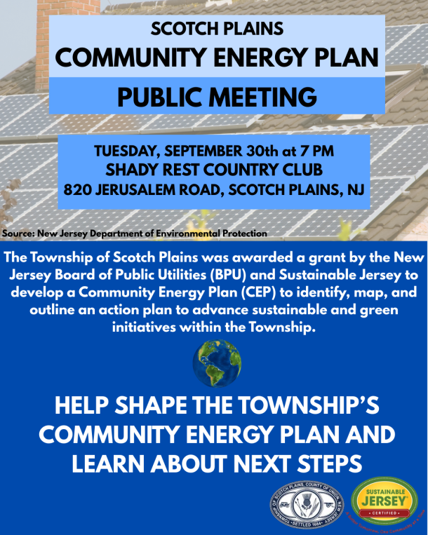 The Township of Scotch Plains was awarded a grant by the New Jersey Board of Public Utilities to develop a Community Energy Plan.