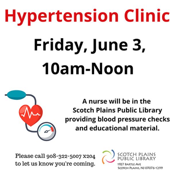 A nurse will be in the Scotch Plains Public Library providing blood pressure checks and educational material.