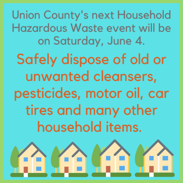 Bring your Household Hazardous Waste to a Free Recycling Event for Union County Residents