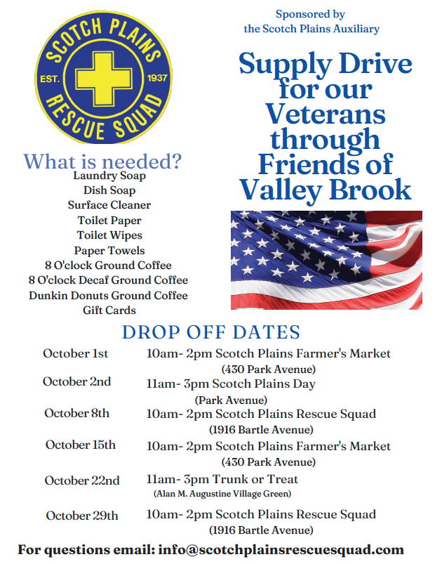 October 8th - 10am- 2pm Scotch Plains Rescue Squad (1916 Bartle Avenue)