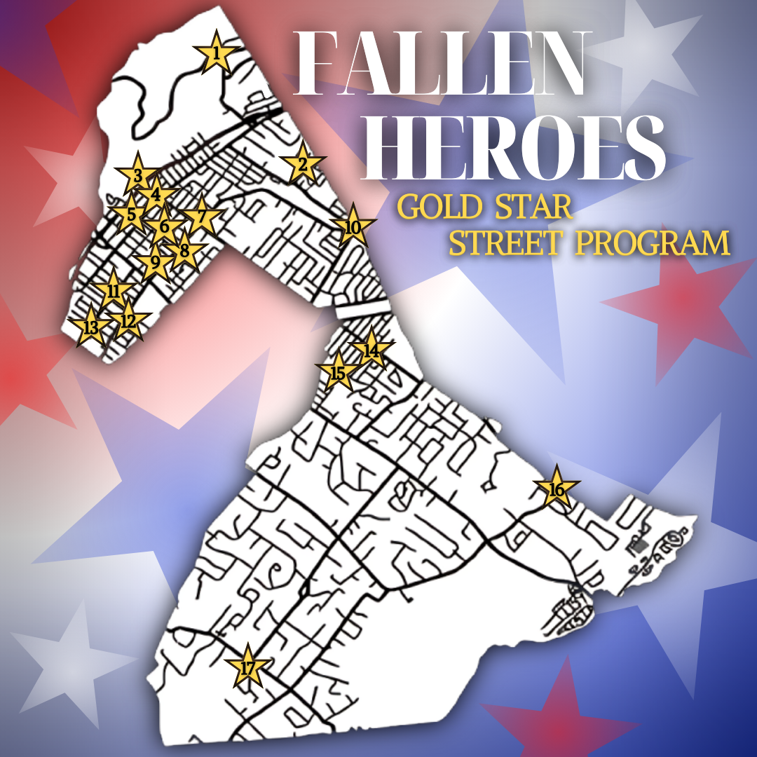 The success of this effort to recognize our Fallen Heroes left us with the desire to do more in memorializing these 20 Fallen Heroes and their Gold Star Families. Thus, the Street Dedication program was born, beginning with the dedication of Sgt Barich on Veterans Day, November 2021.