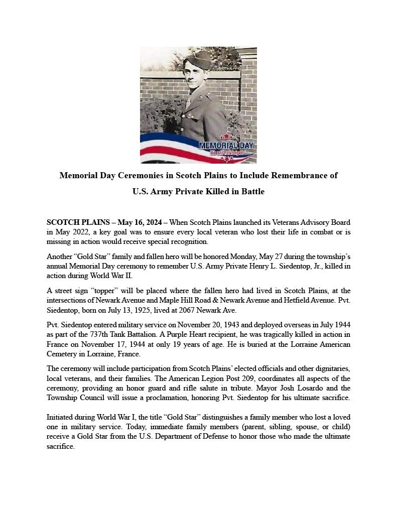 For more information on this event, or to learn about other programs through The Office of Veteran Services, please call Geoff Smith with the Office of Veteran Services at 908-527-4918 or email at
